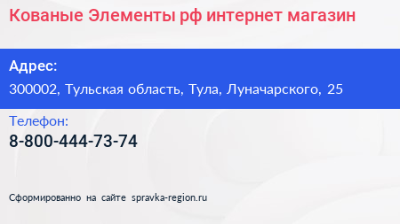 Кованые-Элементы.рф, интернет-магазин по адресу 300002, Тульская область, Тула, Луначарского, 25 в дальнейшем Организация, размещена в следующих категориях: