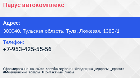 Парус, автокомплекс по адресу 300040, Тульская область, Тула, Ложевая, 138Б/1 в дальнейшем Организация, размещена в следующих категориях: