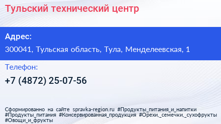 Тульский технический центр по адресу 300041, Тульская область, Тула, Менделеевская, 1 в дальнейшем Организация, размещена в следующих категориях: