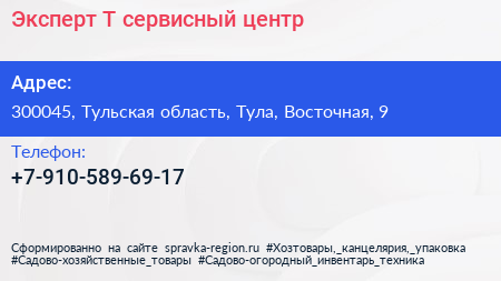 Эксперт-Т, сервисный центр по адресу 300045, Тульская область, Тула, Восточная, 9 в дальнейшем Организация, размещена в следующих категориях: