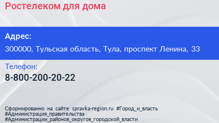 Ростелеком для дома по адресу 300000, Тульская область, Тула, проспект Ленина, 33 в дальнейшем Организация, размещена в следующих категориях: