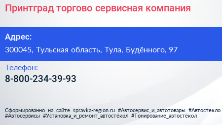 Принтград, торгово-сервисная компания по адресу 300045, Тульская область, Тула, Будённого, 97 в дальнейшем Организация, размещена в следующих категориях: