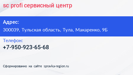 sc profi, сервисный центр по адресу 300039, Тульская область, Тула, Макаренко, 9Б в дальнейшем Организация, размещена в следующих категориях: