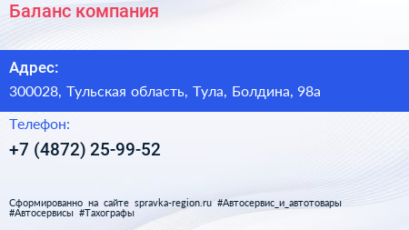 Баланс, компания по адресу 300028, Тульская область, Тула, Болдина, 98а в дальнейшем Организация, размещена в следующих категориях: