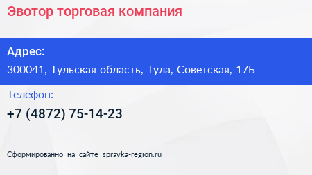 Для связи с организацией воспользуйтесь номером телефона: +7 (4872) 75-14-23. Пн: c 09:00-18:00, Вт: c 09:00-18:00, Ср: c 09:00-18:00, Чт: c 09:00-18:00, Пт: c 09:00-17:00, Сб: выходной, Вс: выходной, вы можете обратиться в эту организацию.