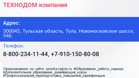 ТЕХНОДОМ, компания по адресу 300045, Тульская область, Тула, Новомосковское шоссе, 54Б в дальнейшем Организация, размещена в следующих категориях: