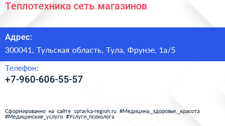 Теплотехника, сеть магазинов по адресу 300041, Тульская область, Тула, Фрунзе, 1а/5 в дальнейшем Организация, размещена в следующих категориях: