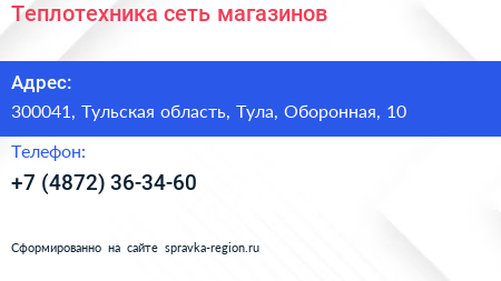 Теплотехника, сеть магазинов по адресу 300041, Тульская область, Тула, Оборонная, 10 в дальнейшем Организация, размещена в следующих категориях: