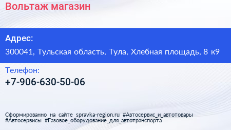 Вольтаж, магазин по адресу 300041, Тульская область, Тула, Хлебная площадь, 8 к9 в дальнейшем Организация, размещена в следующих категориях: