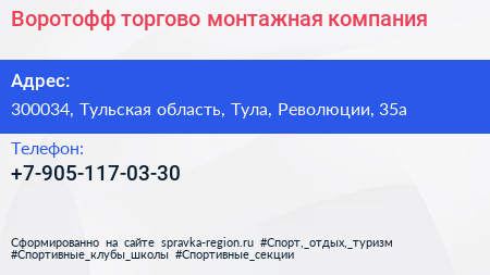 Воротофф, торгово-монтажная компания по адресу 300034, Тульская область, Тула, Революции, 35а в дальнейшем Организация, размещена в следующих категориях: