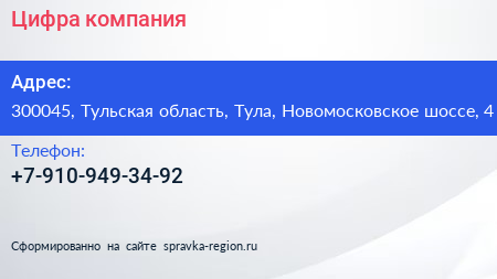 Цифра, компания по адресу 300045, Тульская область, Тула, Новомосковское шоссе, 4 в дальнейшем Организация, размещена в следующих категориях: