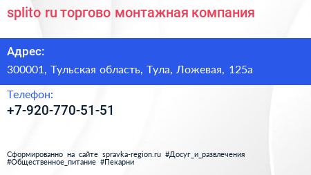 splito.ru, торгово-монтажная компания по адресу 300001, Тульская область, Тула, Ложевая, 125а в дальнейшем Организация, размещена в следующих категориях: