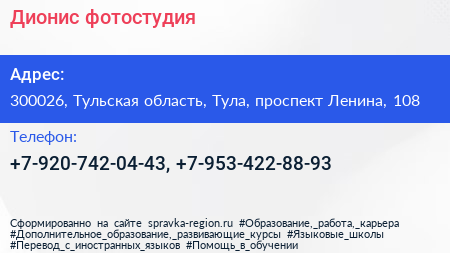 Дионис, фотостудия по адресу 300026, Тульская область, Тула, проспект Ленина, 108 в дальнейшем Организация, размещена в следующих категориях:
