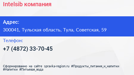 Intelsib, компания по адресу 300041, Тульская область, Тула, Советская, 59 в дальнейшем Организация, размещена в следующих категориях: