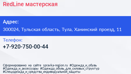 RedLine, мастерская по адресу 300024, Тульская область, Тула, Ханинский проезд, 11 в дальнейшем Организация, размещена в следующих категориях: