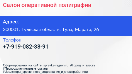 Салон оперативной полиграфии по адресу 300001, Тульская область, Тула, Марата, 26 в дальнейшем Организация, размещена в следующих категориях: