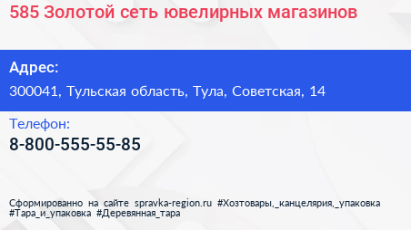 585 Золотой, сеть ювелирных магазинов по адресу 300041, Тульская область, Тула, Советская, 14 в дальнейшем Организация, размещена в следующих категориях: