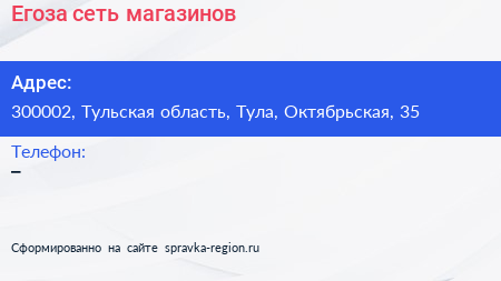 Егоза, сеть магазинов по адресу 300002, Тульская область, Тула, Октябрьская, 35 в дальнейшем Организация, размещена в следующих категориях: