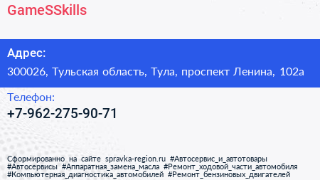 GameSSkills по адресу 300026, Тульская область, Тула, проспект Ленина, 102а в дальнейшем Организация, размещена в следующих категориях: