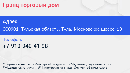 Гранд, торговый дом по адресу 300901, Тульская область, Тула, Московское шоссе, 13 в дальнейшем Организация, размещена в следующих категориях: