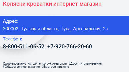 Коляски-кроватки, интернет-магазин по адресу 300002, Тульская область, Тула, Арсенальная, 2а в дальнейшем Организация, размещена в следующих категориях: