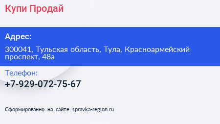 Купи-Продай по адресу 300041, Тульская область, Тула, Красноармейский проспект, 48а в дальнейшем Организация, размещена в следующих категориях: