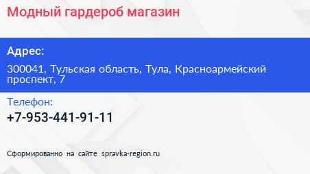 Модный гардероб, магазин по адресу 300041, Тульская область, Тула, Красноармейский проспект, 7 в дальнейшем Организация, размещена в следующих категориях: