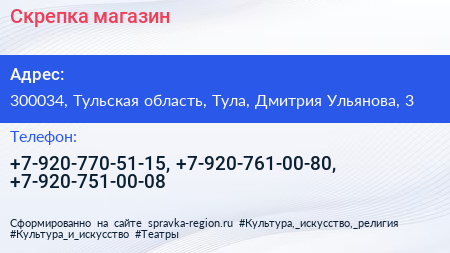 Скрепка, магазин по адресу 300034, Тульская область, Тула, Дмитрия Ульянова, 3 в дальнейшем Организация, размещена в следующих категориях: