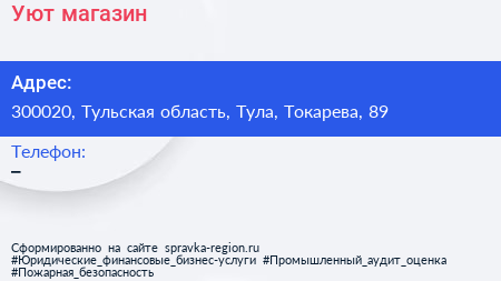 Уют, магазин по адресу 300020, Тульская область, Тула, Токарева, 89 в дальнейшем Организация, размещена в следующих категориях: