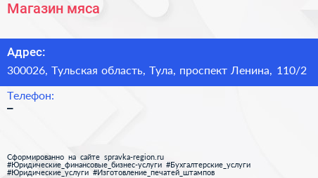 Магазин мяса по адресу 300026, Тульская область, Тула, проспект Ленина, 110/2 в дальнейшем Организация, размещена в следующих категориях: