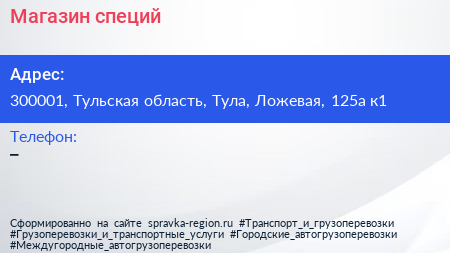 Магазин специй по адресу 300001, Тульская область, Тула, Ложевая, 125а к1 в дальнейшем Организация, размещена в следующих категориях:
