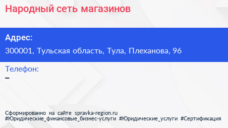 Народный, сеть магазинов по адресу 300001, Тульская область, Тула, Плеханова, 96 в дальнейшем Организация, размещена в следующих категориях:
