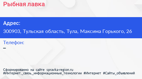 Рыбная лавка по адресу 300903, Тульская область, Тула, Максима Горького, 26 в дальнейшем Организация, размещена в следующих категориях: