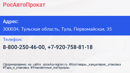 РосАвтоПрокат по адресу 300034, Тульская область, Тула, Первомайская, 35 в дальнейшем Организация, размещена в следующих категориях:
