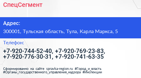 СпецСегмент по адресу 300001, Тульская область, Тула, Карла Маркса, 5 в дальнейшем Организация, размещена в следующих категориях: