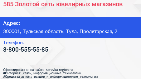 585 Золотой, сеть ювелирных магазинов по адресу 300001, Тульская область, Тула, Пролетарская, 2 в дальнейшем Организация, размещена в следующих категориях:
