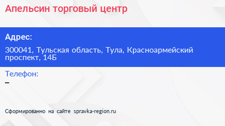 Апельсин, торговый центр по адресу 300041, Тульская область, Тула, Красноармейский проспект, 14Б в дальнейшем Организация, размещена в следующих категориях: