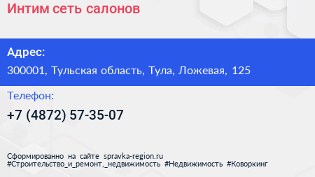 Интим, сеть салонов по адресу 300001, Тульская область, Тула, Ложевая, 125 в дальнейшем Организация, размещена в следующих категориях: