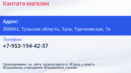 Кантата, магазин по адресу 300041, Тульская область, Тула, Тургеневская, 7а в дальнейшем Организация, размещена в следующих категориях: