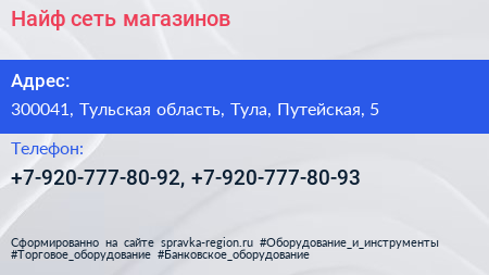 Найф, сеть магазинов по адресу 300041, Тульская область, Тула, Путейская, 5 в дальнейшем Организация, размещена в следующих категориях: