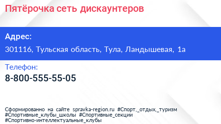 Пятёрочка, сеть дискаунтеров по адресу 301116, Тульская область, Тула, Ландышевая, 1а в дальнейшем Организация, размещена в следующих категориях: