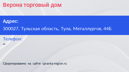 Верона, торговый дом по адресу 300027, Тульская область, Тула, Металлургов, 44Б в дальнейшем Организация, размещена в следующих категориях: