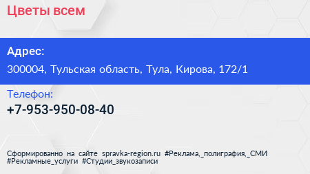 Цветы всем! по адресу 300004, Тульская область, Тула, Кирова, 172/1 в дальнейшем Организация, размещена в следующих категориях: