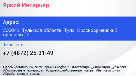 Яркий Интерьер по адресу 300041, Тульская область, Тула, Красноармейский проспект, 7 в дальнейшем Организация, размещена в следующих категориях: