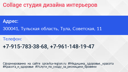 Collage, студия дизайна интерьеров по адресу 300041, Тульская область, Тула, Советская, 11 в дальнейшем Организация, размещена в следующих категориях: