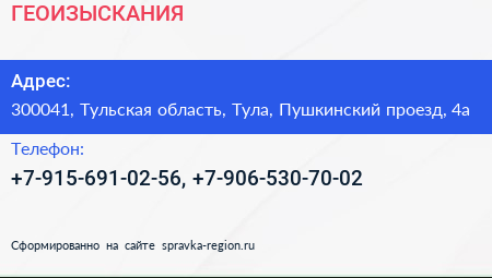 ГЕОИЗЫСКАНИЯ по адресу 300041, Тульская область, Тула, Пушкинский проезд, 4а в дальнейшем Организация, размещена в следующих категориях: