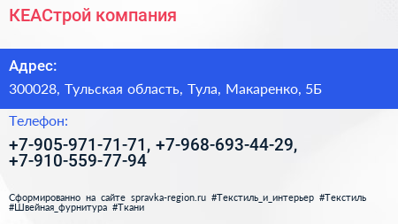 КЕАСтрой, компания по адресу 300028, Тульская область, Тула, Макаренко, 5Б в дальнейшем Организация, размещена в следующих категориях: