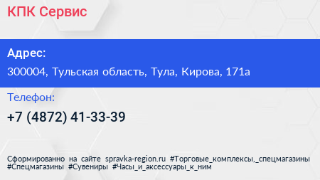КПК-Сервис по адресу 300004, Тульская область, Тула, Кирова, 171а в дальнейшем Организация, размещена в следующих категориях: