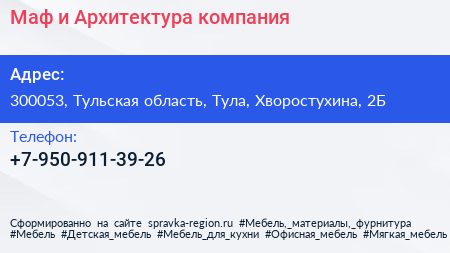 Маф и Архитектура, компания по адресу 300053, Тульская область, Тула, Хворостухина, 2Б в дальнейшем Организация, размещена в следующих категориях: