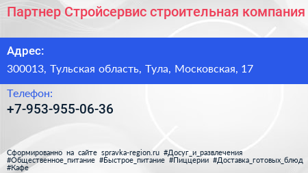Партнер Стройсервис, строительная компания по адресу 300013, Тульская область, Тула, Московская, 17 в дальнейшем Организация, размещена в следующих категориях: